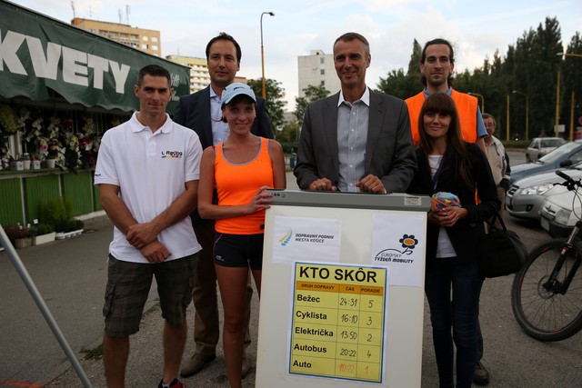 V rámci Európskeho týždňa mobility (16. – 22.9.2013) pripravil Dopravný podnik mesta Košice obľúbenú súťaž s názvom „Kto skôr“. Uskutočnila sa začiatkom týždňa (16.9.2013), pričom jej cieľom bolo zistiť, kto bude najrýchlejší. Z Námestia osloboditeľov štartovala električka, elektromobil, autobus, cyklista a bežec. Cieľ bol na sídlisku Nad Jazerom zastávka Ladožská pri kostole. Víťazom sa stal elektromobil, za ktorého volantom sedel 5 násobný majster SR Jozef Béreš ml. Dorazil do cieľa za 10 minút a 22 sekúnd. Druhá prišla električka (13:50), tretí cyklista (16:10), štvrtý autobus (20:22) a posledná dobehla bežkyňa (24:31).