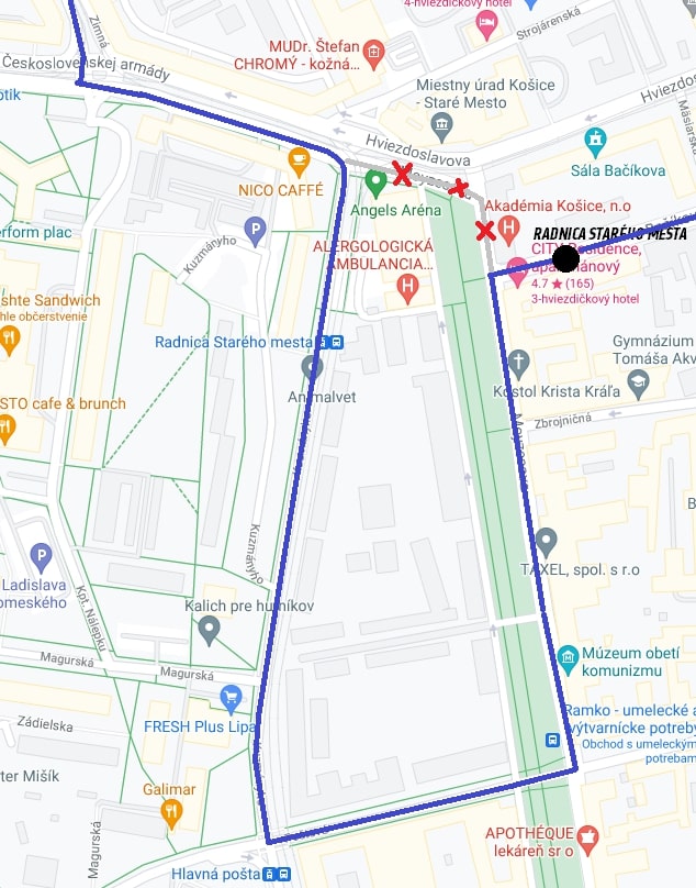 - linky č. 19 a 22 v smere zo Zimnej na Námestie Maratónu mieru