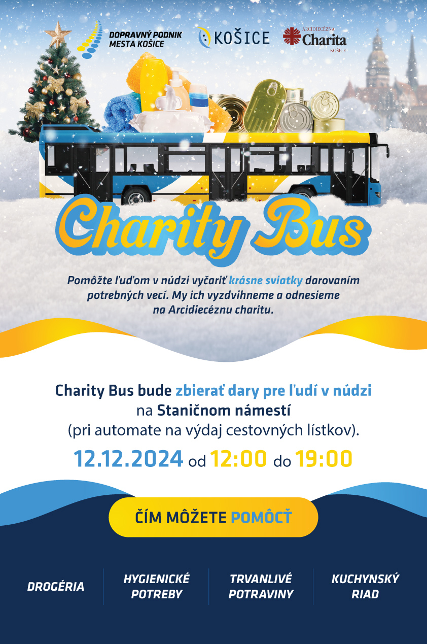 KOŠICE, 09.12.2024: DPMK v spolupráci s Arcidiecéznou charitou opäť organizuje CharityBus; pomôže ľuďom v núdzi, sociálne slabším a ľuďom bez domova.
